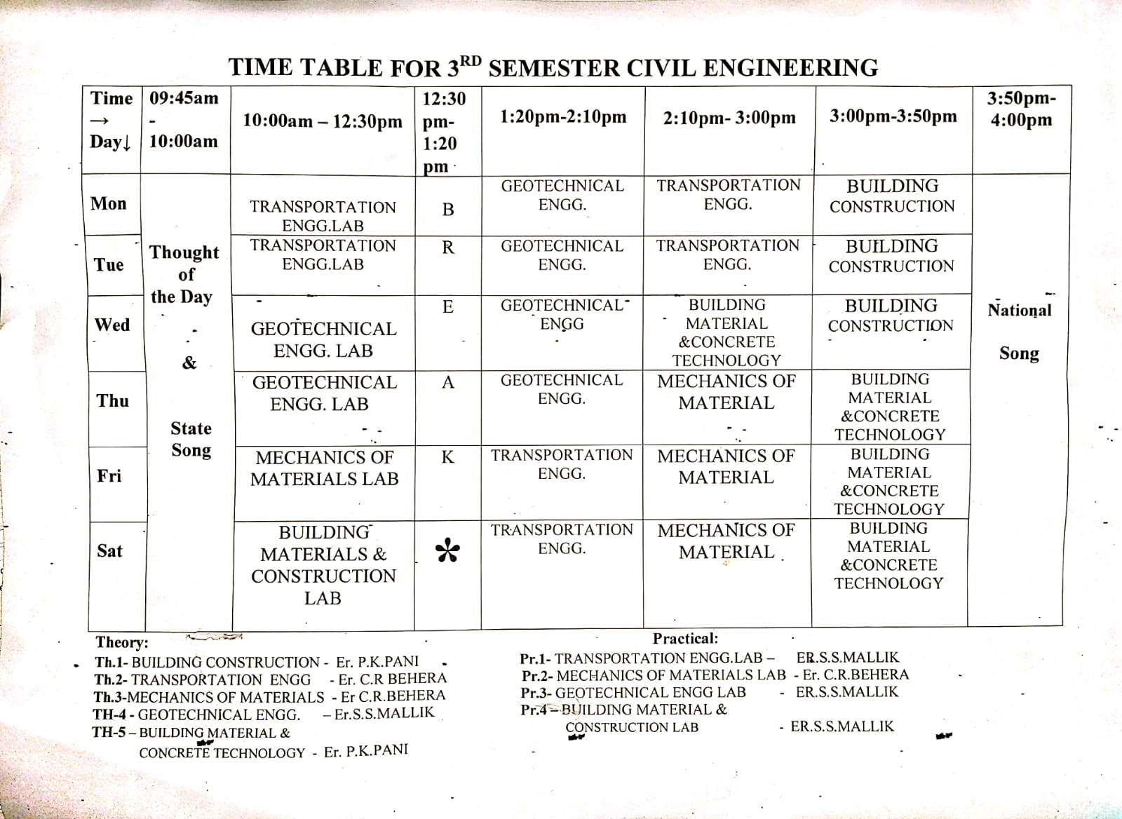 Time TABLE 4TH SEM CIVIL