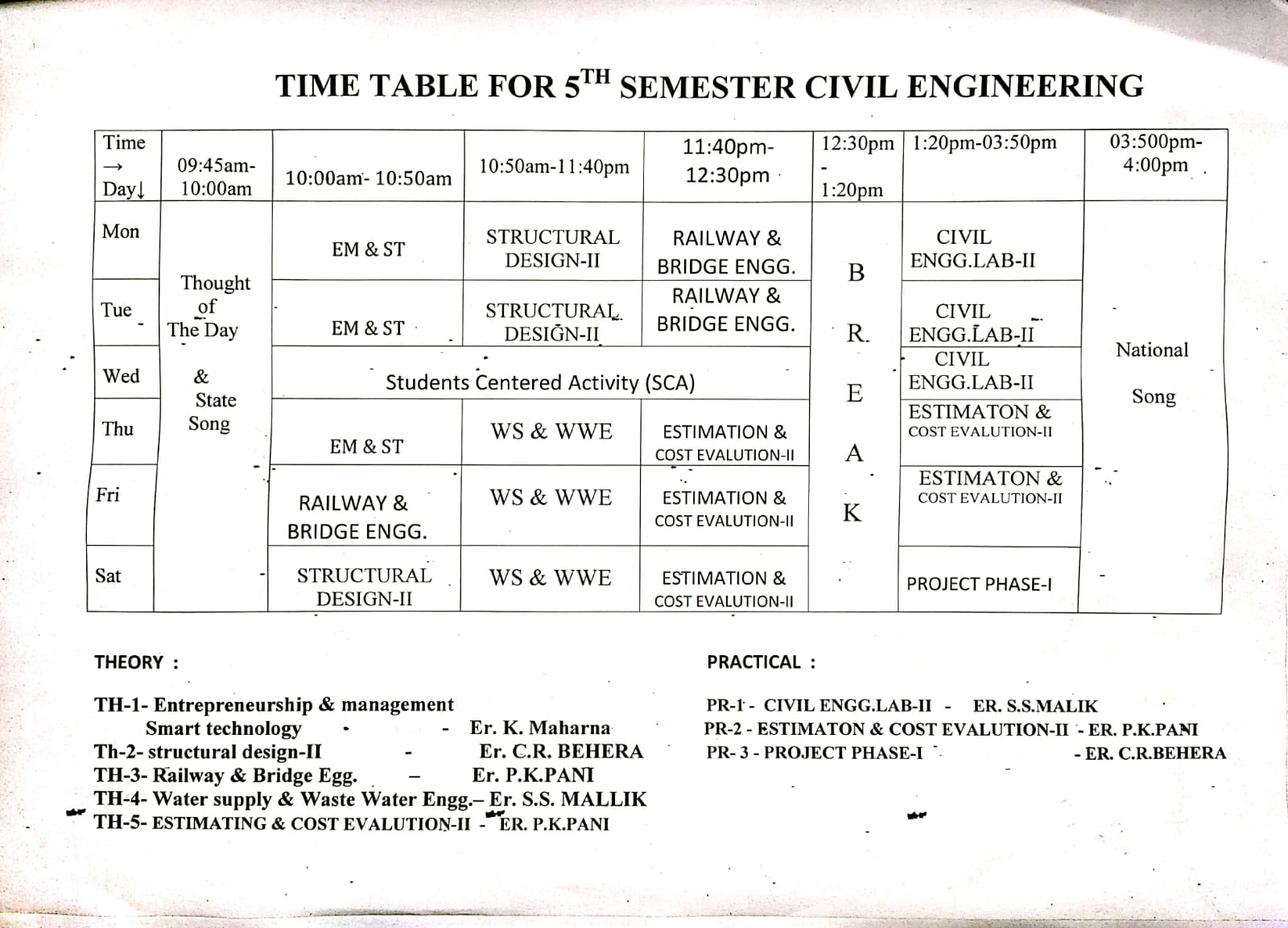 Civil 5 th sem time